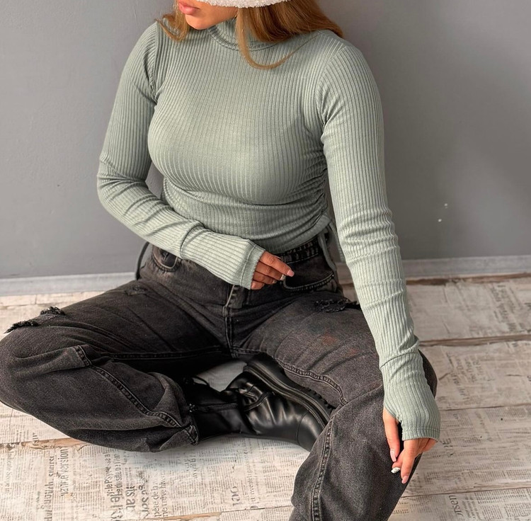 کراپ زنانه مدل یقه اسکی بغل گت دار
