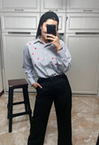 متاسفانه این کالا در حال حاضر موجود نیست. میتوانید از طریق لیست بالای صفحه، از محصولات مشابه این کالا دیدن نمایید.شومیز راه راه زنانه مدل استین بلند