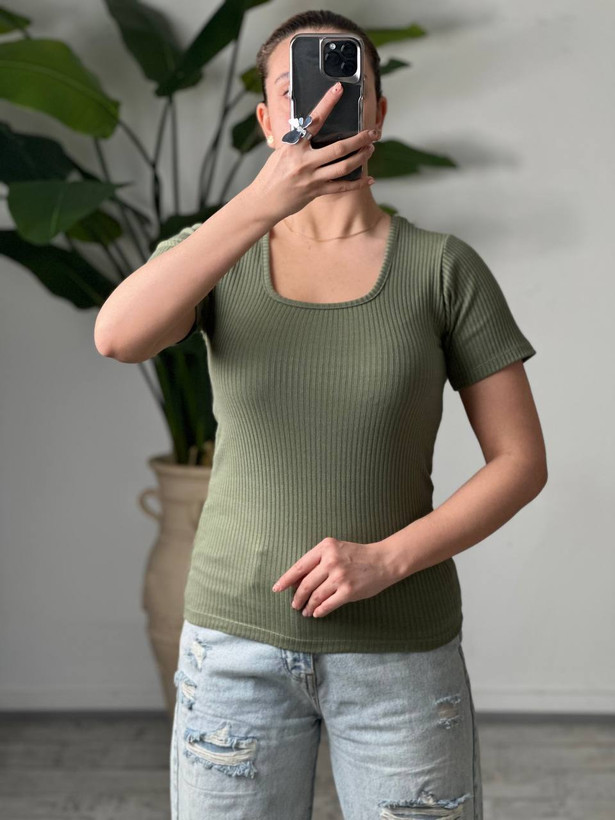 بلوز زنانه استین کوتاه مدل یقه خشتی