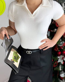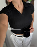کراپ زنانه مدل یقه انگلیسی استین کوتاه