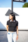 کراپ تیشرتی زنانه مدل یقه دار سفید