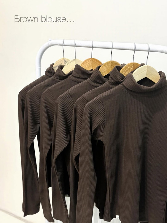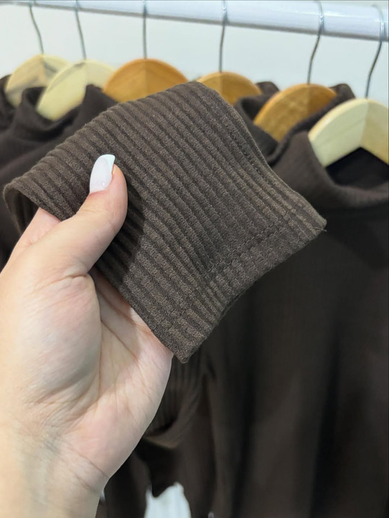 بلیز یقه اسکی قهوه ای پلیسه پنبه